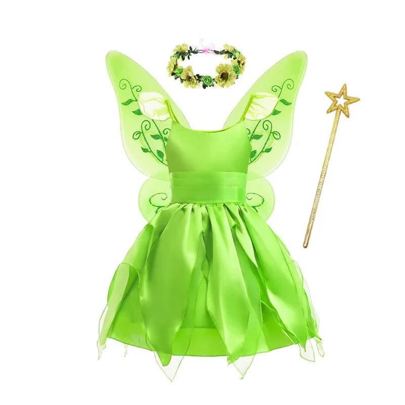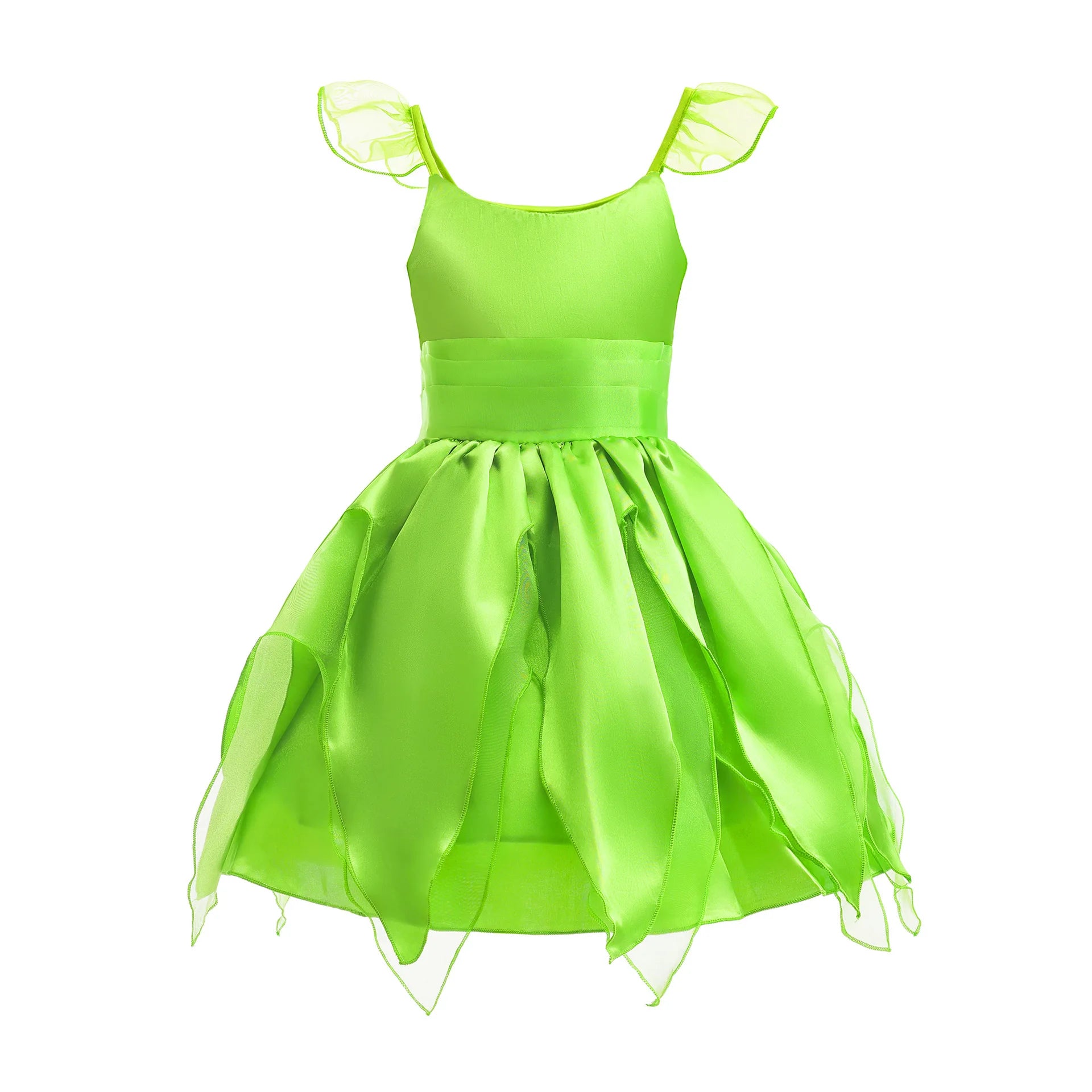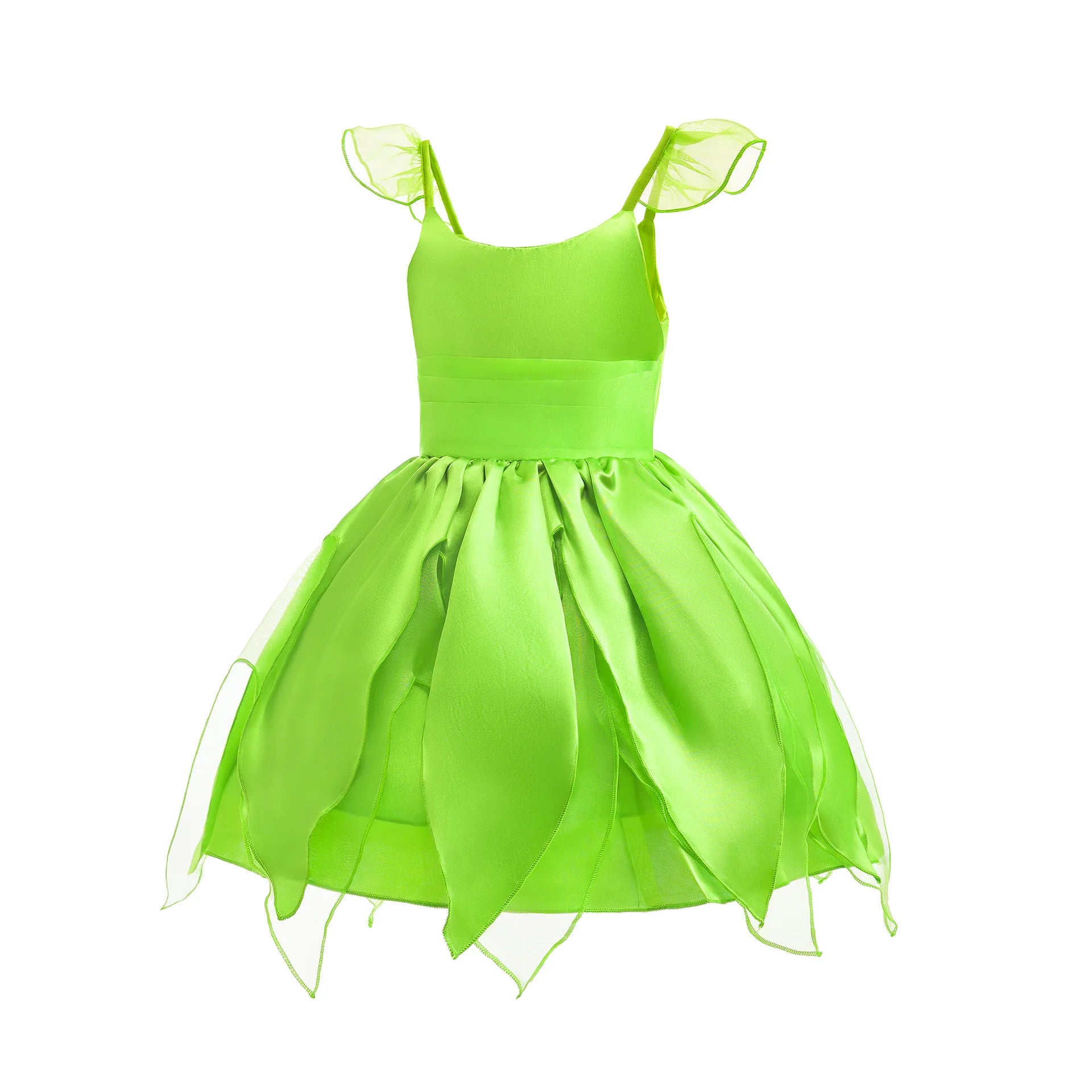 Bird_ Fairy Tinker Bell Dress for Girls Princess Costume Kids Cosplay Green Flower Fairy Elf Wings