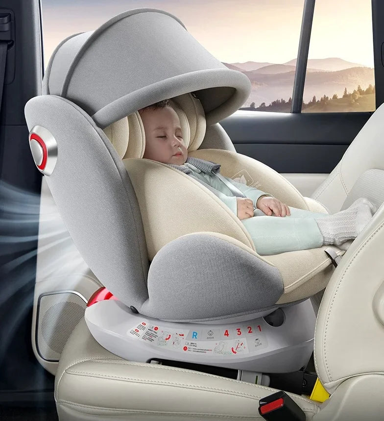 Little one _360° Rotating Child Car Safety Seat 0-12 Years Old Growth Safety Seat with Footrest and Sunshade ISOFIX Steel Interface