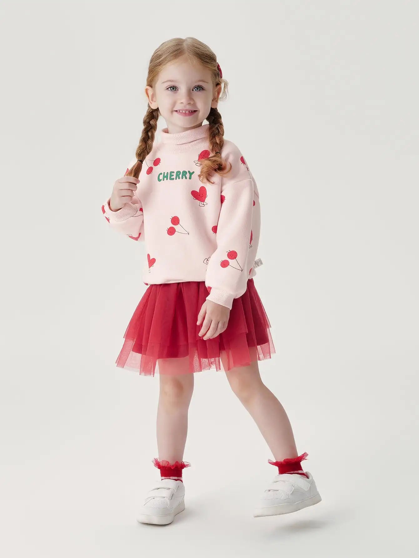 PRETTY_ Girls Cartoon Printed Padded Ribbed High Neck Sweatshirt